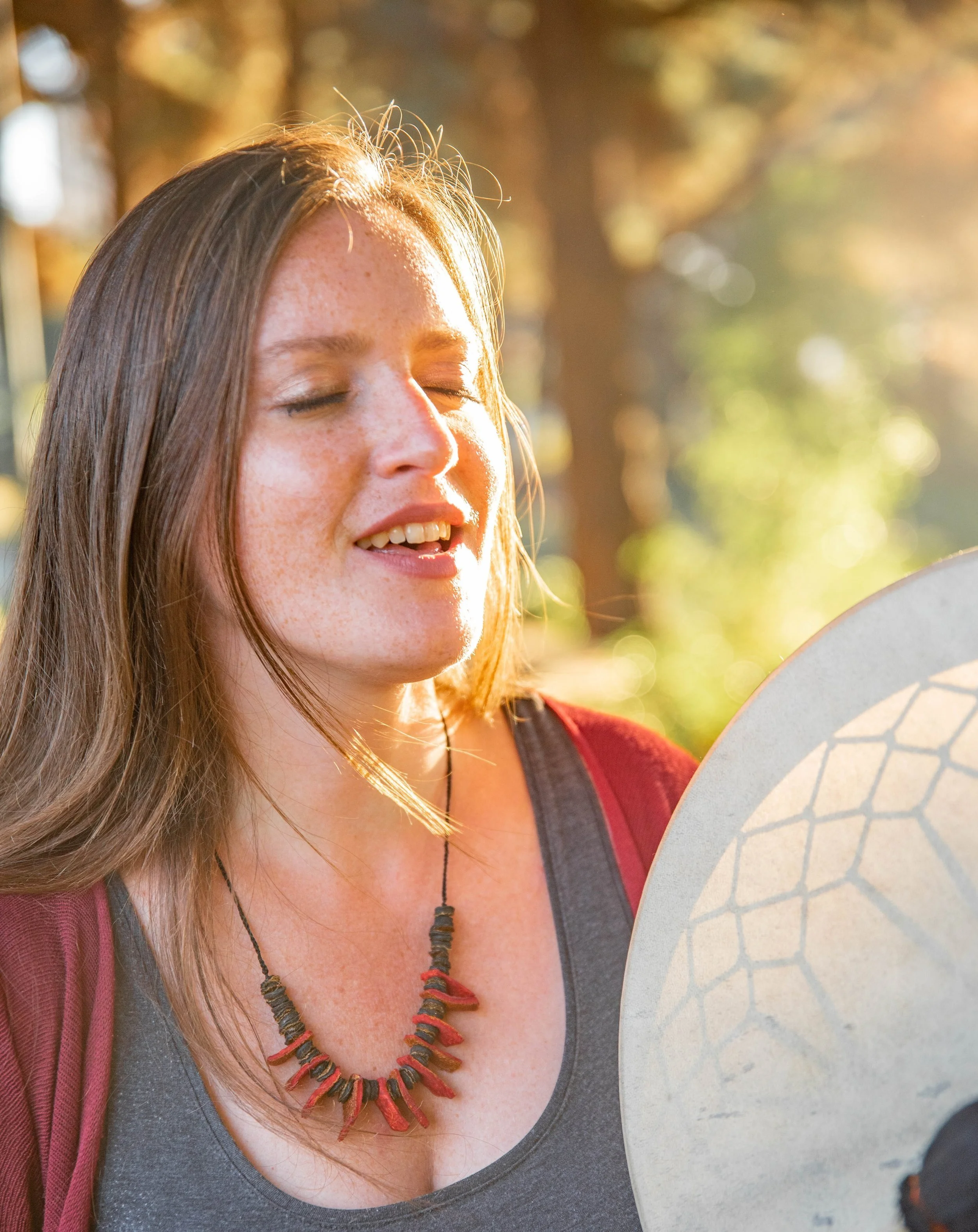 Práctica de canto con tambor.